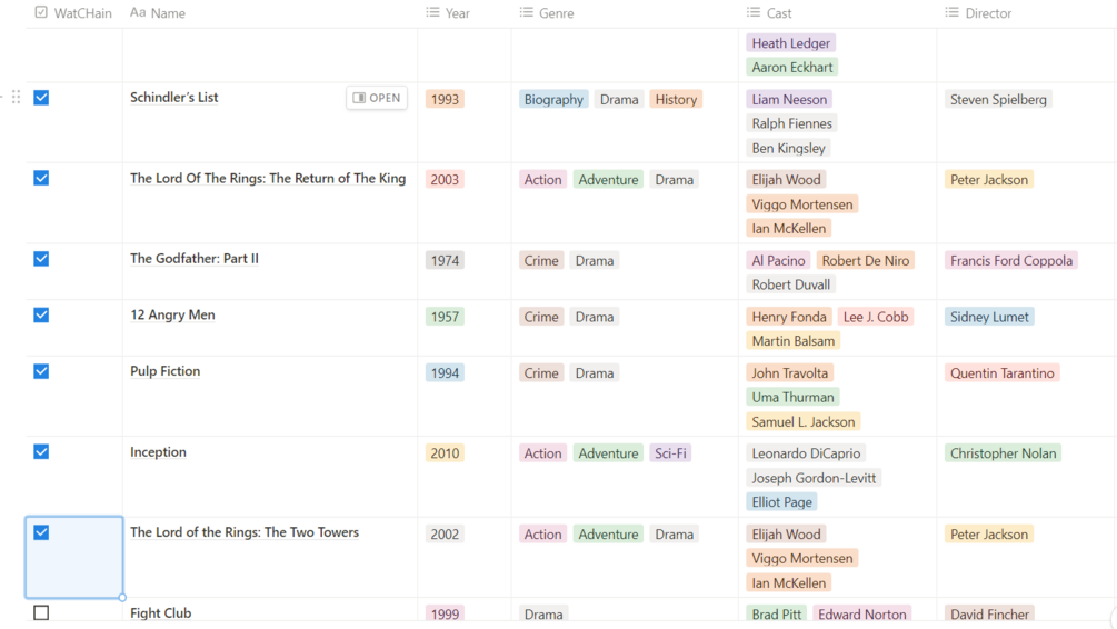 It is a movie chain for those who want to both watch the best-rated movies over the years and follow what they watch. After you watch the movie, you can fill out the checklist! Set your GOAL! Complete the CHAIN! Enjoy!